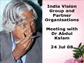 India Vision Partner organisations met Dr Abdul Kalam on 24th July 2008 at Chennai. During that time, they recorded an exclusive message of Dr Abdul Kalam. Please listen